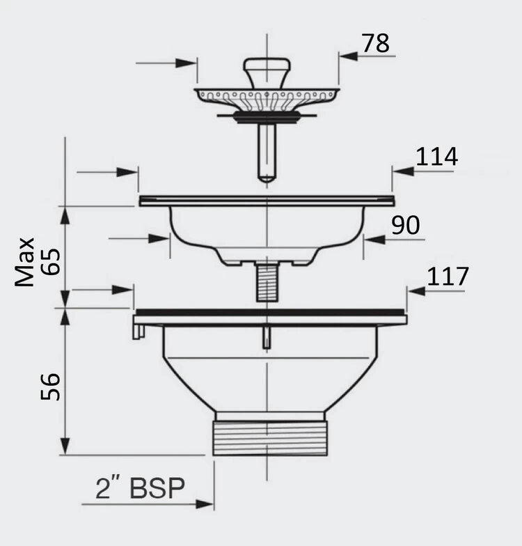 Our 90mm waste fitting in supplied with a 70mm long extended screw, it is specifically designed for use with butler sinks with a thick base.