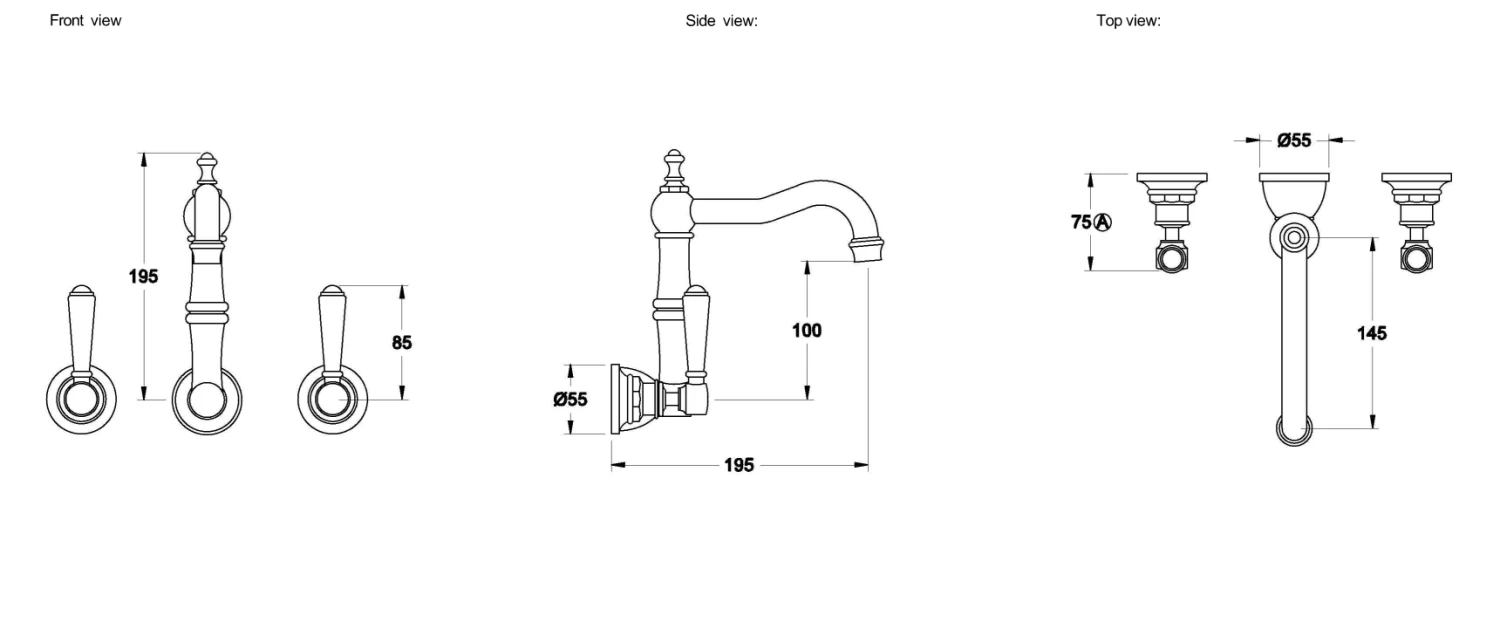 - Projection to Spout Centre: 195mm