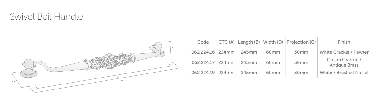 - Centre to Centre: 224mm