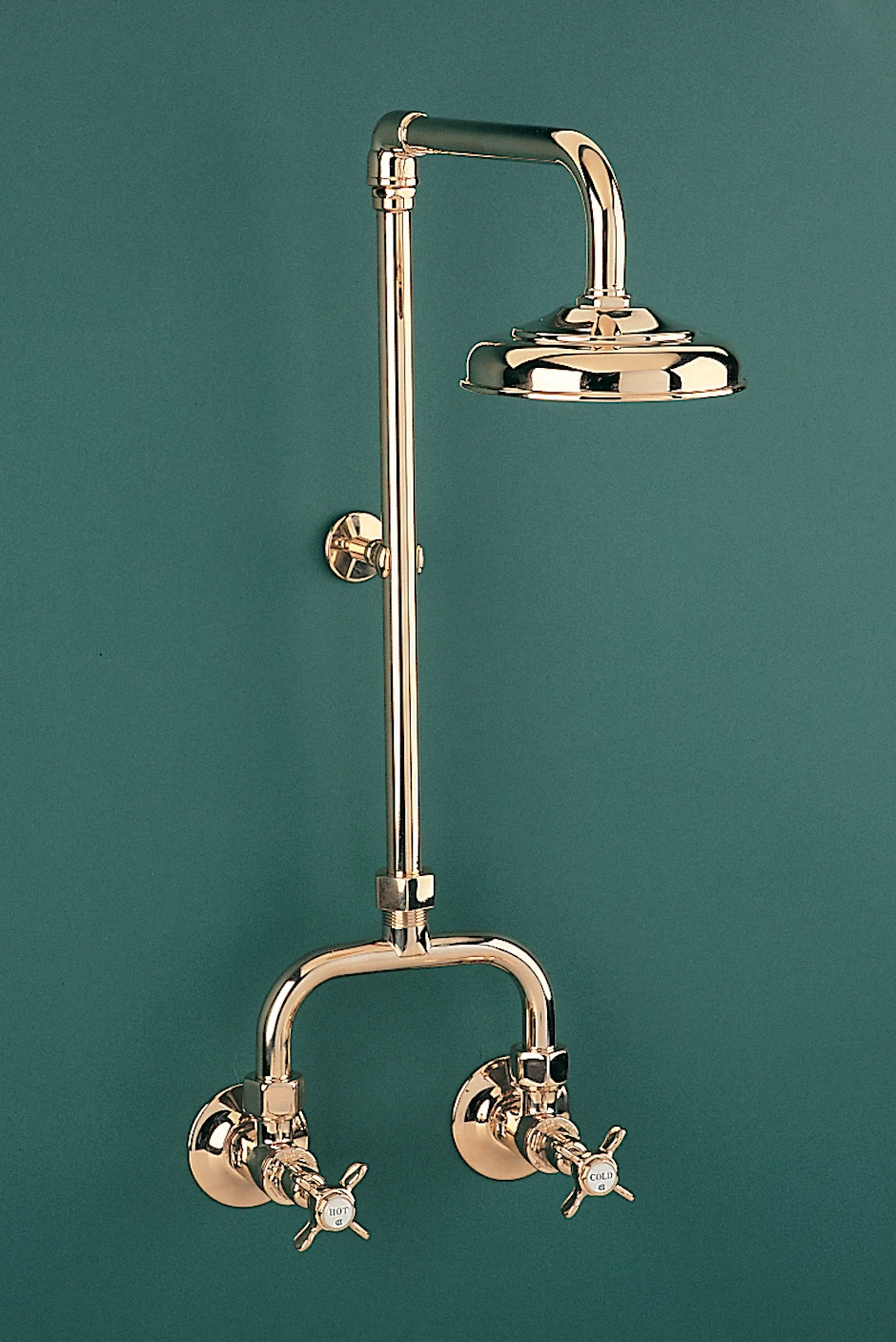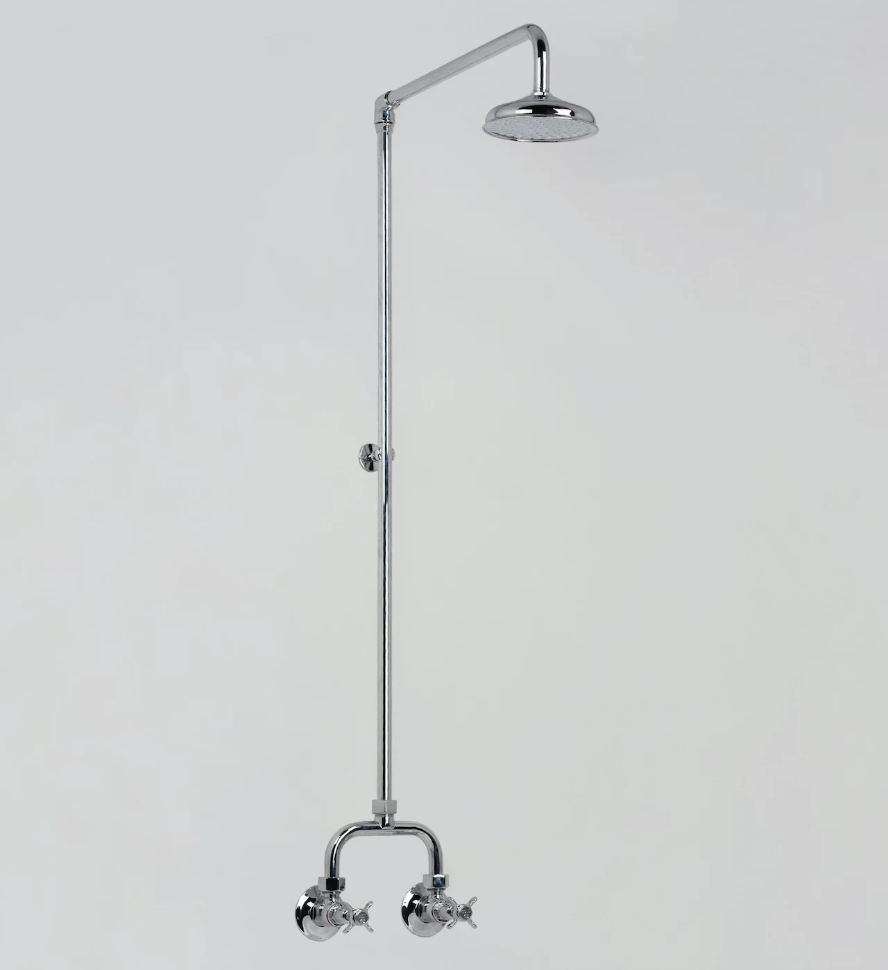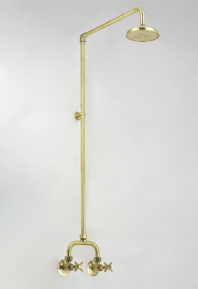 Heritage Alcove Shower Set includes the two tap assemblies, exposed breech & pipework and 140mm fixed rose.