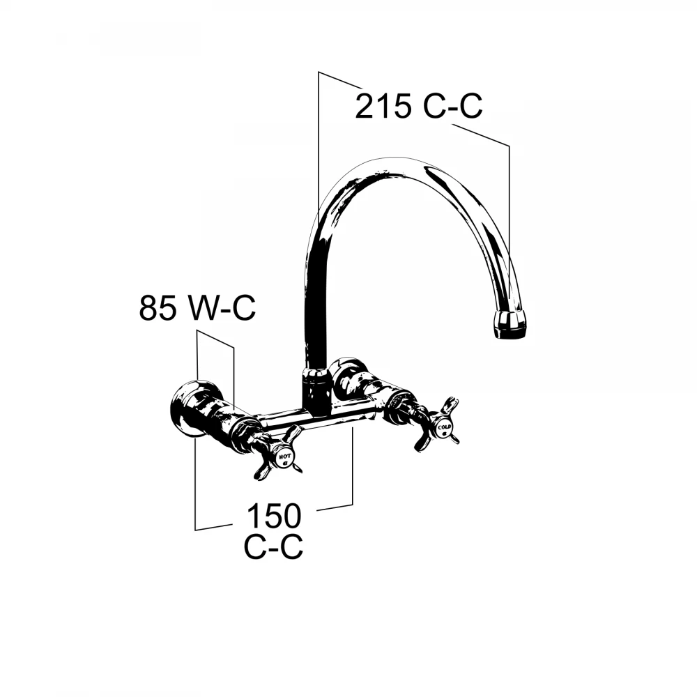In wall requirement: 2 x 1/2"Â BSP Male Irons at 150mm Centres.Â