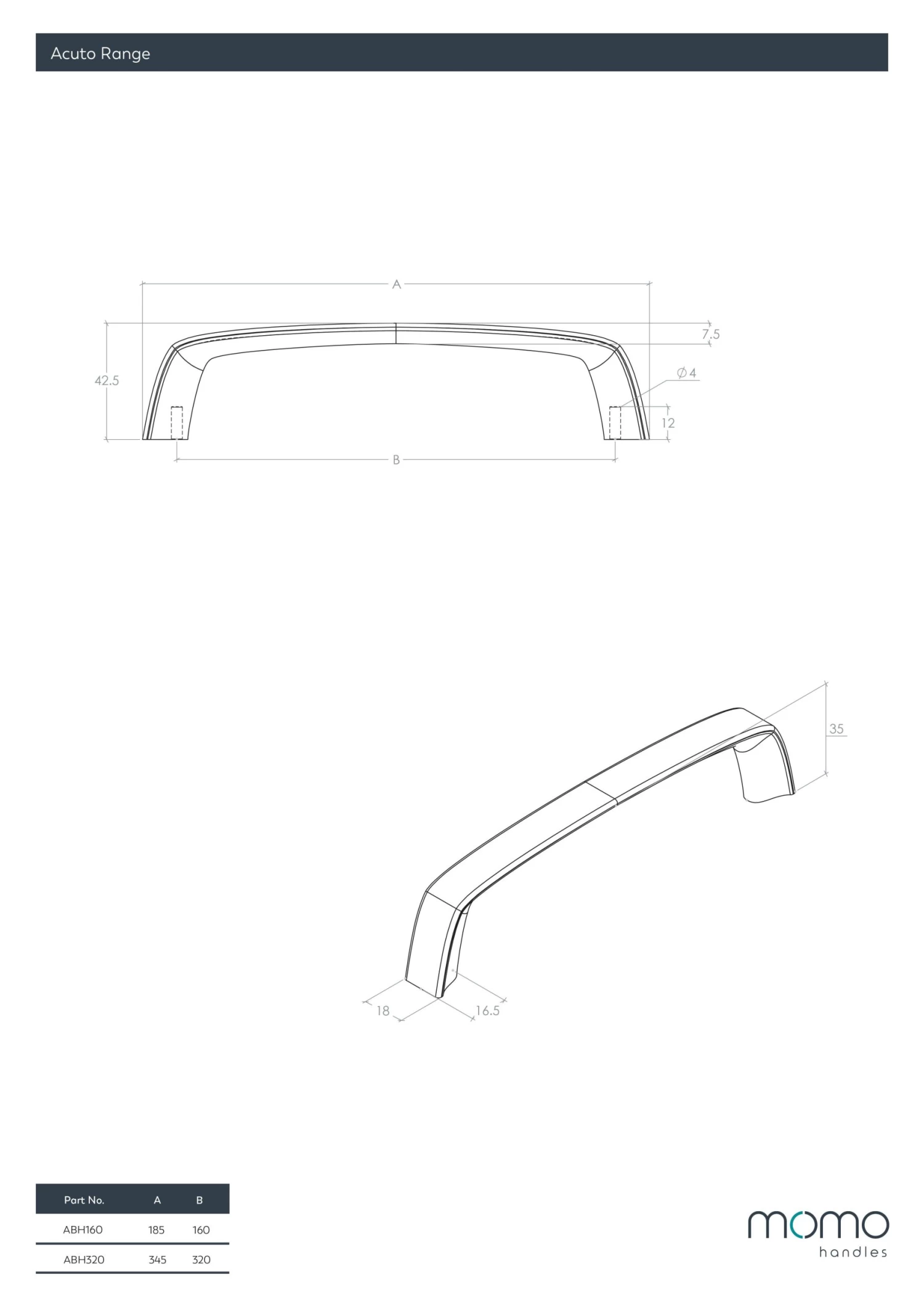 - Centre to Centre: 160mm – Overall Length: 185mm