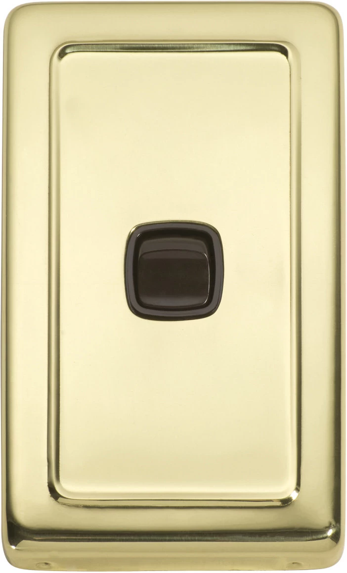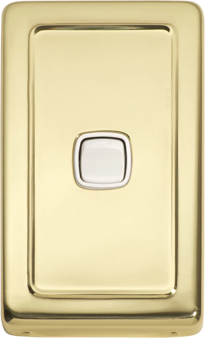 Flat plate 1 gang rocker switches with brass covers and HPM mechanisms. Matching sockets and compatible accessories also available.