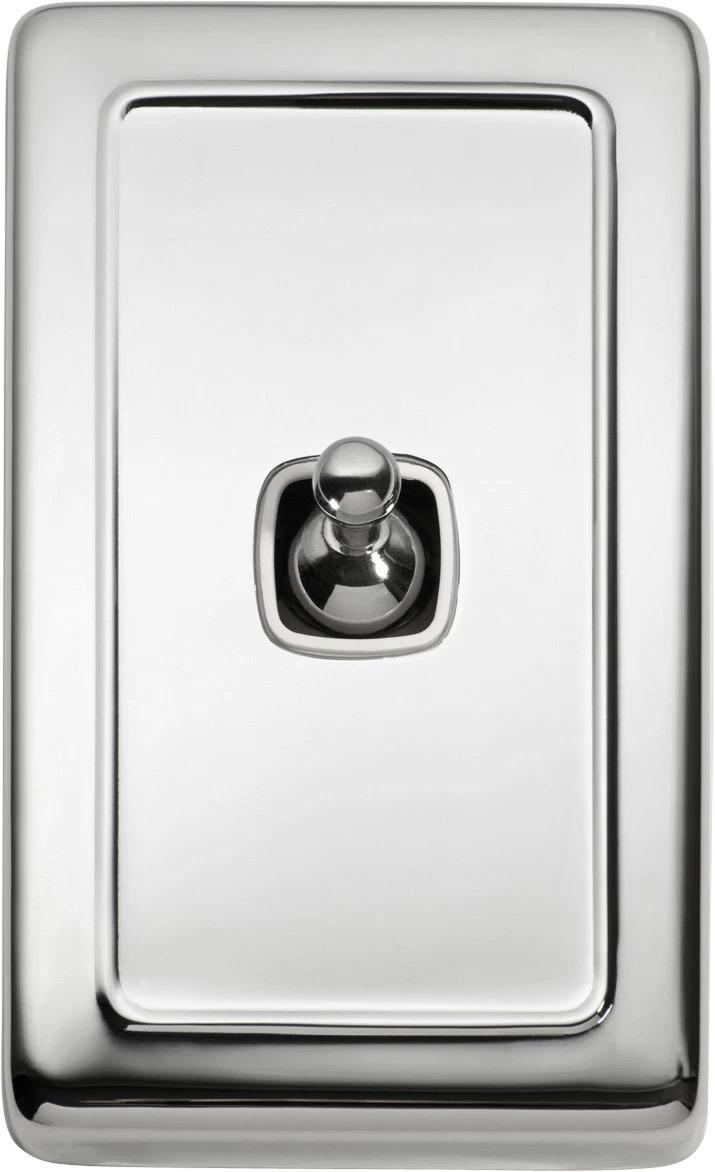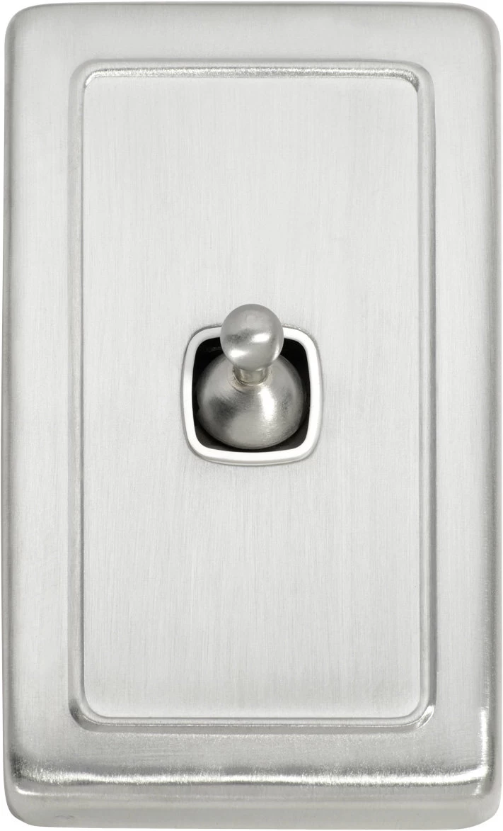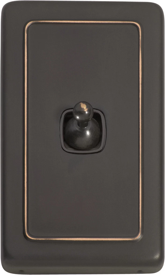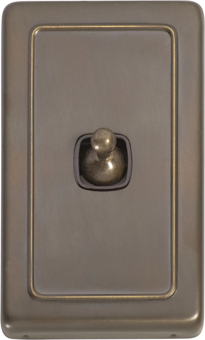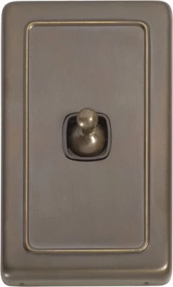 Flat plate 1 gang toggle switches with brass covers and HPM mechanisms. Matching sockets and compatible accessories also available.