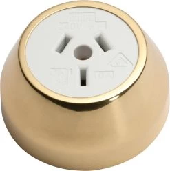 Federation style sockets with brass covers and toggles. Matching switches, dimmers and fan controllers also available.