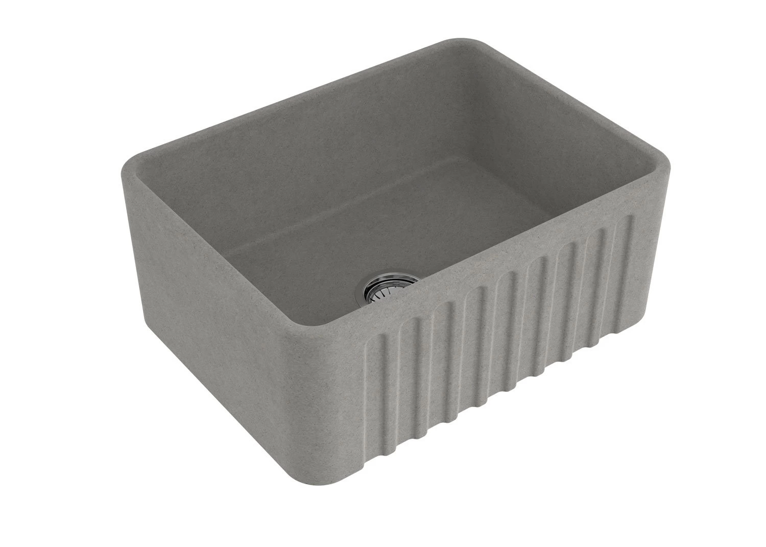 Enjoy the look of concrete, but with the durability, ease of cleaning, smooth texture and other benefits of fine fireclay. The Novi boasts an intelligent double-sided design ribbed front on one side and flat front on the other. This allows you to install it either way to suit your kitchen design. The ribbed side gives it a Heritage handmade look while the flat side is more subtle working well in contemporary kitchens.