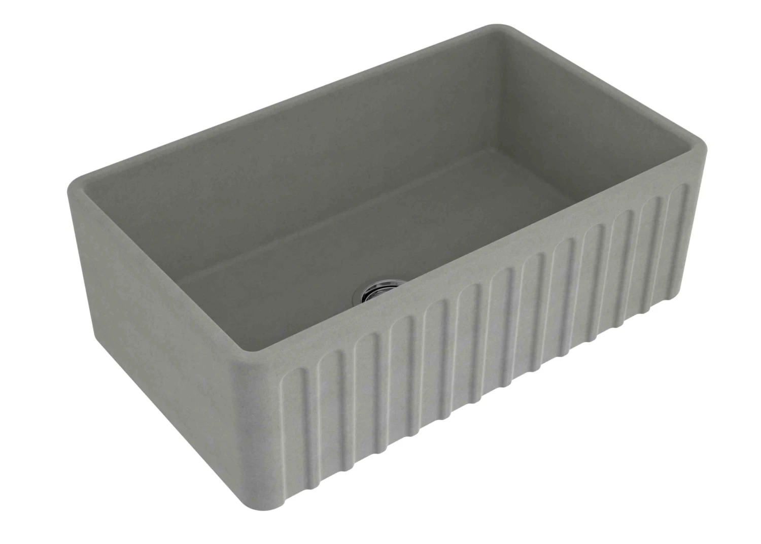 Enjoy the look of concrete, but with the durability, ease of cleaning, smooth texture and other benefits of fine fireclay. The Novi boasts an intelligent double-sided design ribbed front on one side and flat front on the other. This allows you to install it either way to suit your kitchen design. The ribbed side gives it a Heritage handmade look while the flat side is more subtle working well in contemporary kitchens.