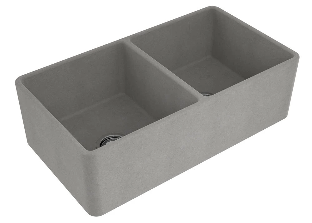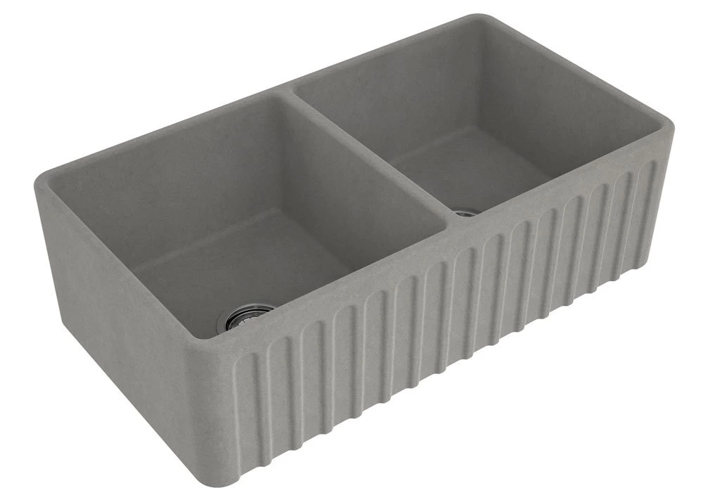 Enjoy the look of concrete, but with the durability, ease of cleaning, smooth texture and other benefits of fine fireclay. The Novi Double boasts an intelligent double-sided design ribbed front on one side and flat front on the other. This allows you to install it either way to suit your kitchen design. The ribbed side gives it a Heritage handmade look while the flat side is more subtle working well in contemporary kitchens.