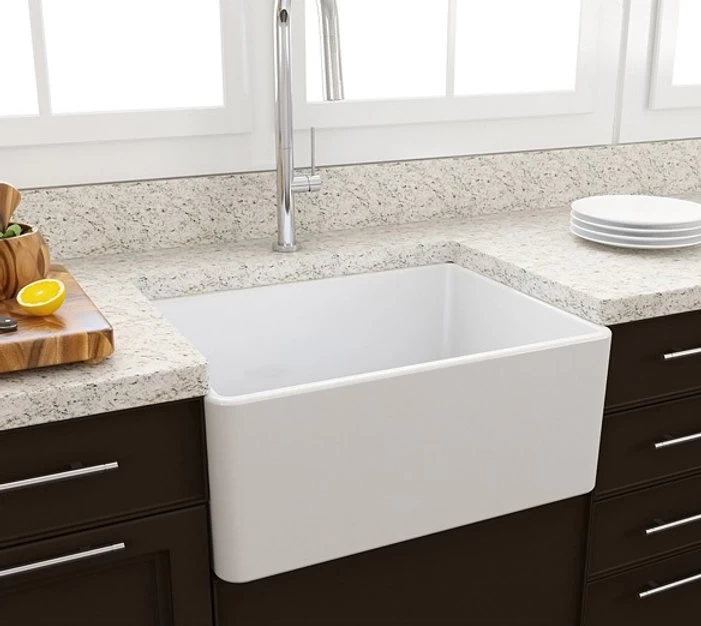 - This sink is reversible, so it can be installed with flat or ribbed/farmhouse side facing out.