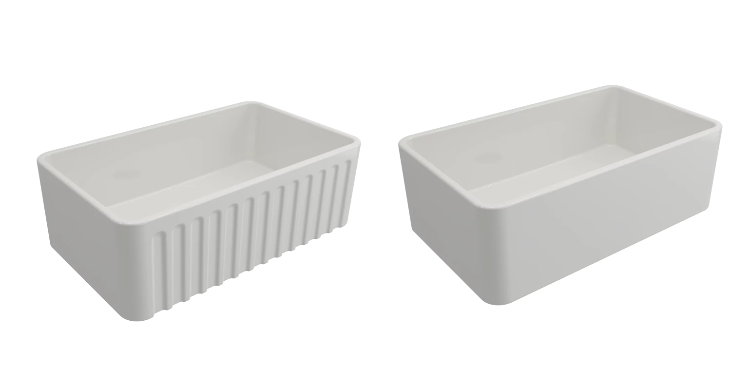 - This sink is reversible, so it can be installed with flat or ribbed/farmhouse side facing out.