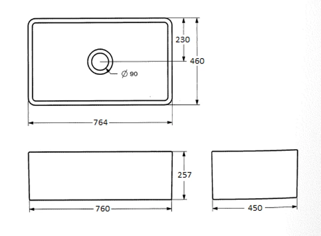- Note: Fine Fireclay is a natural product and therefore subject to variations. This should be seen as a quality that adds to its unique natural beauty. Variations +/- 2% to the specifications are common and acceptable and are within industry tolerance. We always recommend the cabinet maker and stone provider has the actual sink with them to measure before making cabinetry or cutting stone. For more information please visit our Installation, Care & Warranty page, or Contact Us.
