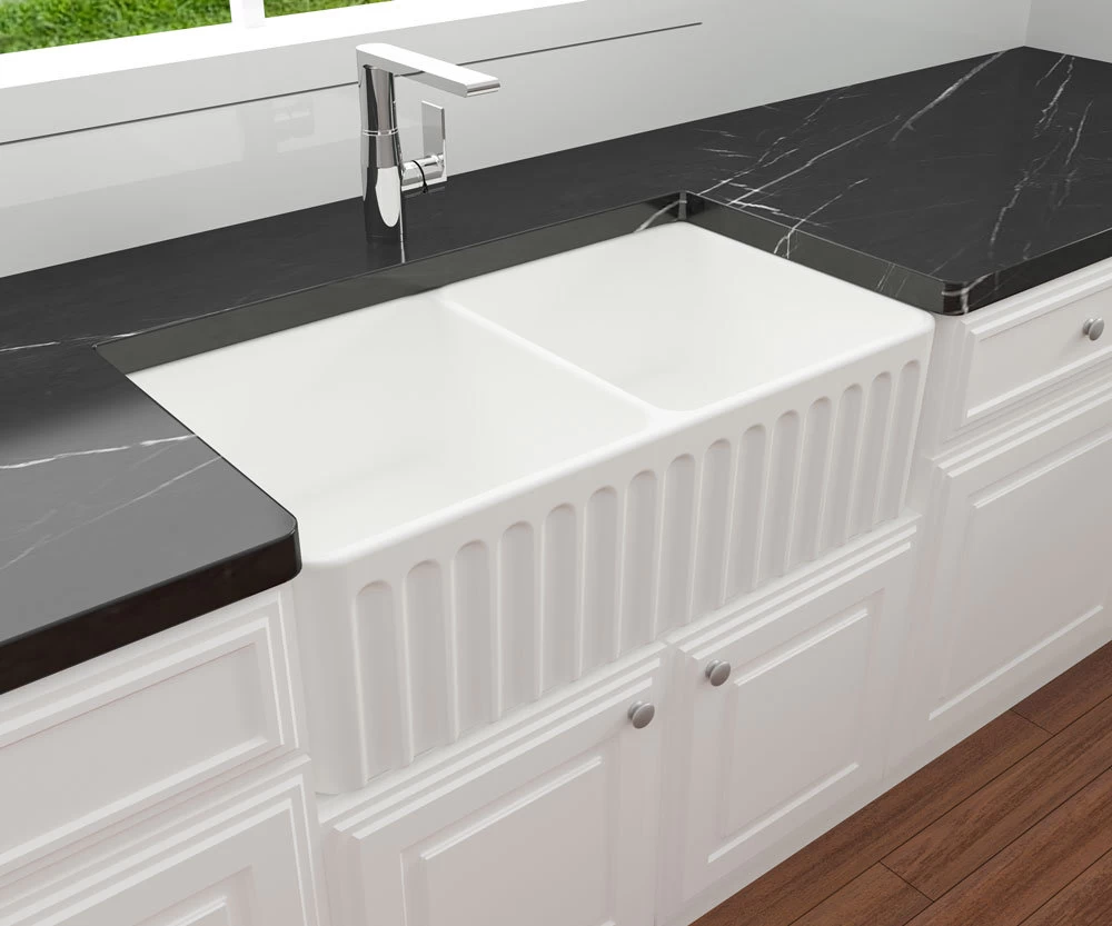The sink is highly stain, scratch and chemical resistant, making it more hygienic than most sinks on the market. Adding to the unique beauty of this sink is it's fine fireclay composition, which is a stronger and less brittle product than ceramic, making it highly durable against the impacts of daily washing up.