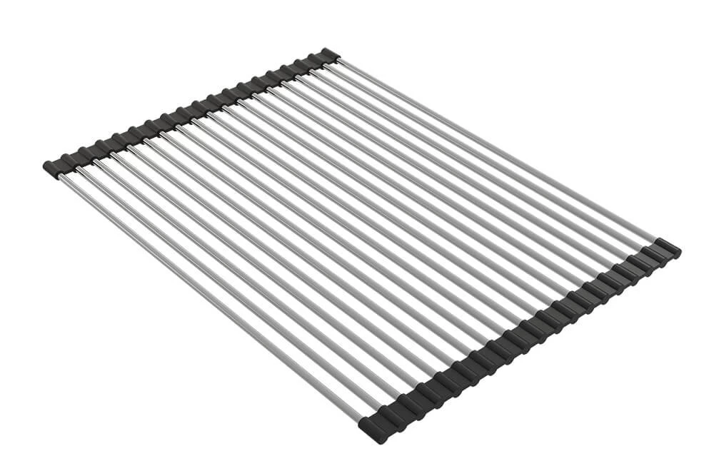The roller mat is made of durable stainless steel rods with flexible rubber edging allows for easy rolling motion to lay out, or roll up for storage. The roller mat has extreme resistance to heat making this ideal for use under hot pots and pans, or as a drainer for wet dishes. It is designed conveniently suit our Cuisine fireclay sinks (see list below for compatible sinks) when installed inset or undermount installation.