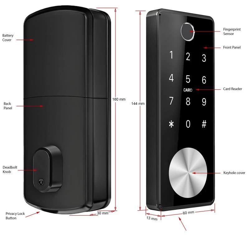 - Entry options: Bluetooth, fingerprint, passcode, IC card, regular key & Wifi*